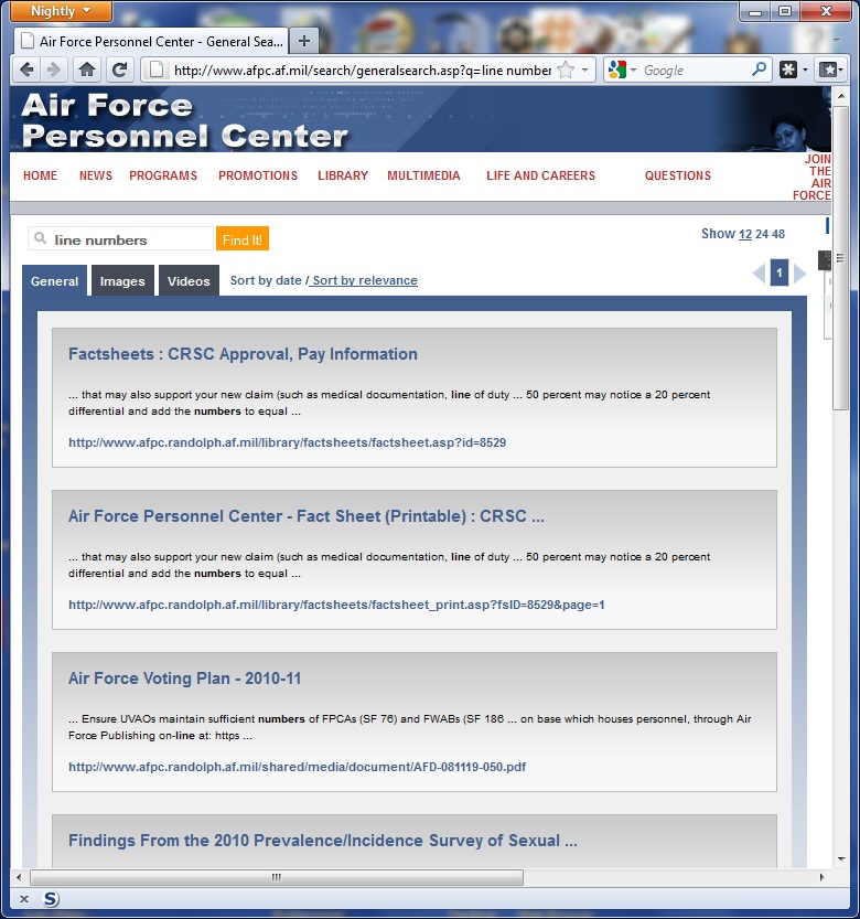 Shouldn’t a document relating to “line numbers” be at the top of the page or on the first page of these search results? Even a Google search has no results from any official Air Force public site. You might get lucky to find pages on AirForceTimes.com with line numbers from several months ago. However, this information is outdated when you don’t have your Common Access Card (CAC) handy.